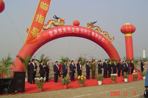 市委書記、市人大常委會主任張建國,市委副書記、市長劉慧晏,市委常委、市委秘書長侯法生,市委常委、高新區(qū)工委書記、管委會主任崔洪剛,市人大常委會副主任常志鈞,副市長宋錫坤,市政協(xié)副主席王立慶,淄博軍分區(qū)司令鞠洪侖,博山區(qū)區(qū)長李樹民等有關(guān)部門領(lǐng)導(dǎo)及山東博泵科技股份有限公司領(lǐng)導(dǎo)及中層干部共300余人參加了奠基儀式。