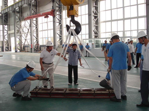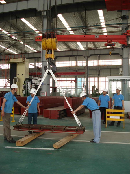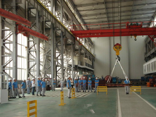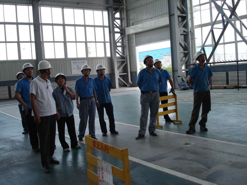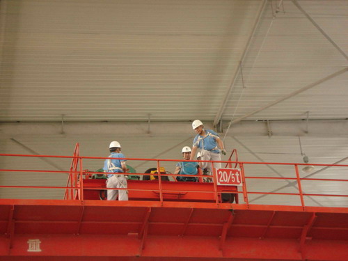 此次預(yù)演活動(dòng)的主要內(nèi)容是,吊車在運(yùn)行過程中突然停電后工作人員的應(yīng)變能力。演習(xí)開始了,首先,停電后吊車工先把開關(guān)手柄放置到“零位”并監(jiān)控總電源。同時(shí),生產(chǎn)部裝配班、物流班部分員工在各自科長的帶領(lǐng)下在吊運(yùn)物件下設(shè)護(hù)欄并監(jiān)護(hù),以防有人誤進(jìn)危險(xiǎn)區(qū)域。其次,生產(chǎn)技術(shù)部維修人員按照安全操作規(guī)程,爬上吊車走臺,盤車移動(dòng)到合適位置然后慢慢拉、合抱閘把物件送回地面。最后,解除危險(xiǎn)。